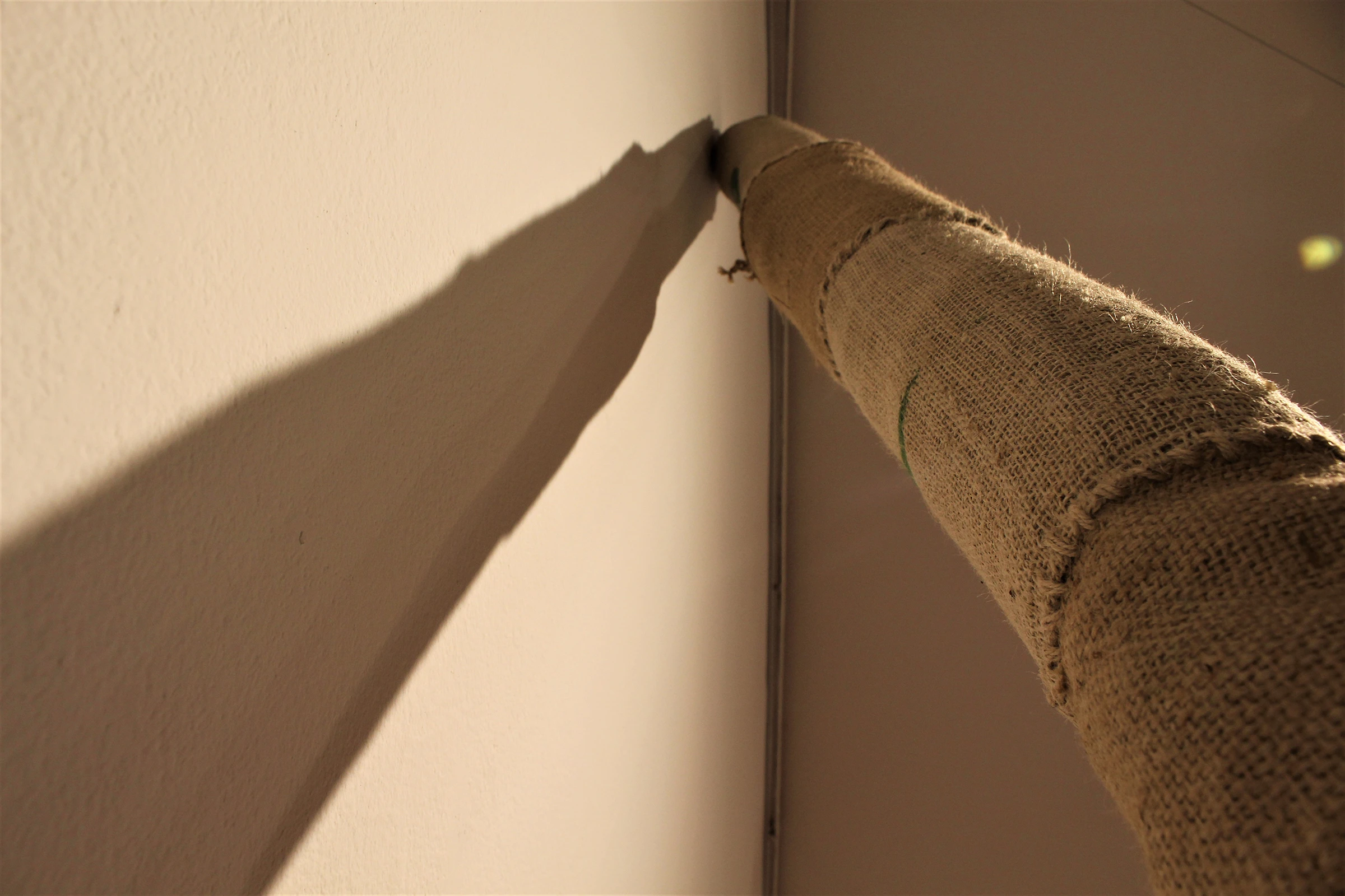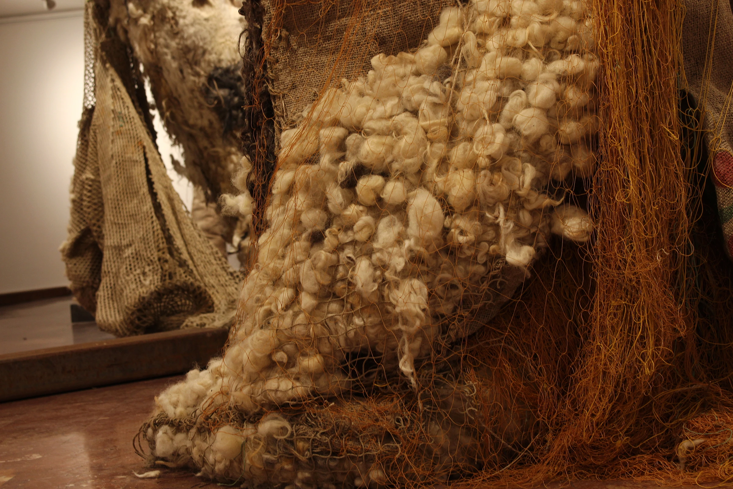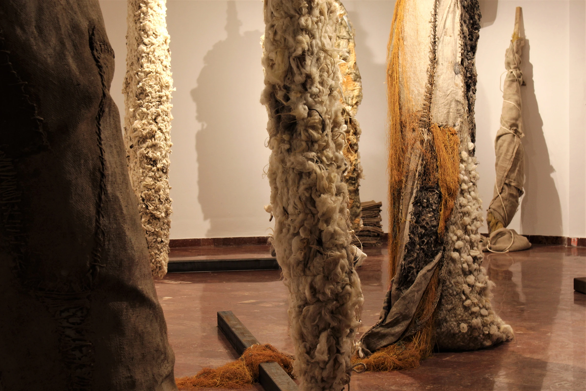 Using discarded materials which lost their primary purpose as a starting point – jute, wool, fish ing nets, rope – she builds new associative structures not being afraid of their decaying prop erties. The process of creating is essential to her, the genesis of the work – looking for the form, she discovers herself. She starts intuitively, without preliminary sketches, enters the material directly, finding it’s pulse and harmonize with its character and properties. She sews and stuffs, empties and adds, confronts the softness and warmth of the wool with rough texture of jute. The traces she leaves on them are archaic inscriptions deeply woven inside her; she is partially aware of them - they come out of her during working, like automated recordings in the form of cracks, slits, gaps and tightly closed lines and knots. Formed layers of experience, memory and emotions, Ivana projected into amorphous shapes, monumental, free, but encased; they seem to breathe, calmly and quietly, retaining or sharing their story. She sews and frees them, while completely closing the ones she’s, maybe, not willing to cope with. Each seam, created in the silence of the abandoned space, is one intimate note.