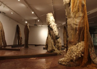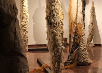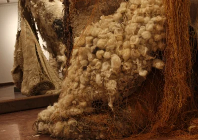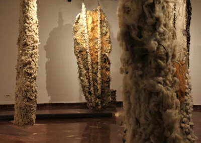 The spaces where sculptures are created and are going to be displayed, have important role in her working process, because only in relation with them, their complexity becomes significant. That is to say, the energy of the space where they are created – the deserted military complex in Montenegro as a place of contemplating about fleetness, is woven into them. The new one is going to be woven through interaction with spectators who are given the liberty of interpre tation.